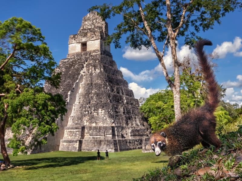 In Guatemala vind je een nog levende Indigena cultuur waar indiaanse vrouwen op de markt hun inkopen doen en offers van bloemen en wierook brengen aan hun goden. Wandel langs vulkanen en meren en ontdek Maya ruïnes verborgen in de jungle, waar brulapen en neusbeertjes de dienst uitmaken. Je reist per vooraf geboekte 1e-klas lijnbus en shuttlebus omdat je huurauto de grens niet over mag.