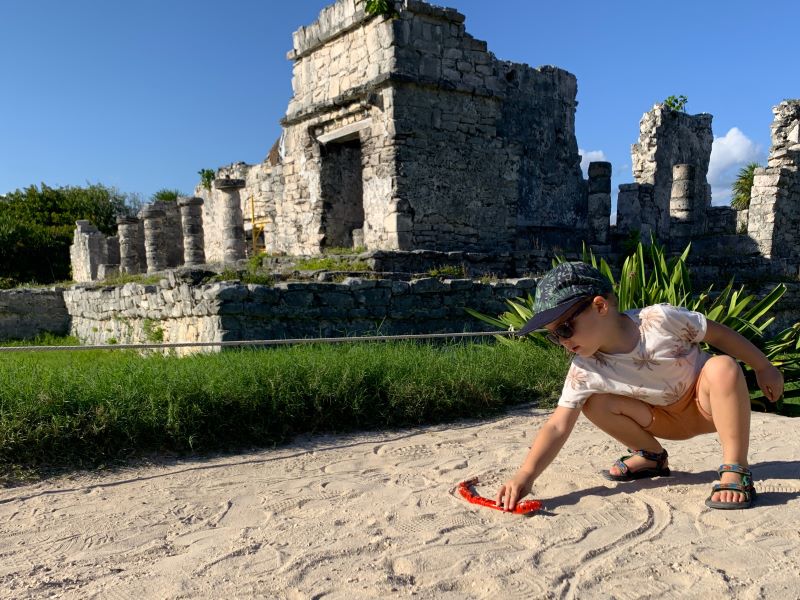 Akumal is een familievriendelijk kustplaatsje, waar wij in een leuk hotel verblijven direct aan een heerlijk palmenstrand. Vanaf ons balkon kunnen we door de palmbomen heen de zee zien. Na onze toch wel avontuurlijke reis door Mexico is het nu echt tijd om te ontspannen en de indrukken van de afgelopen weken te verwerken. Het strand loopt langzaam af in zee en er staat weinig stroming, dus de kids kunnen hier veilig in zee spelen.